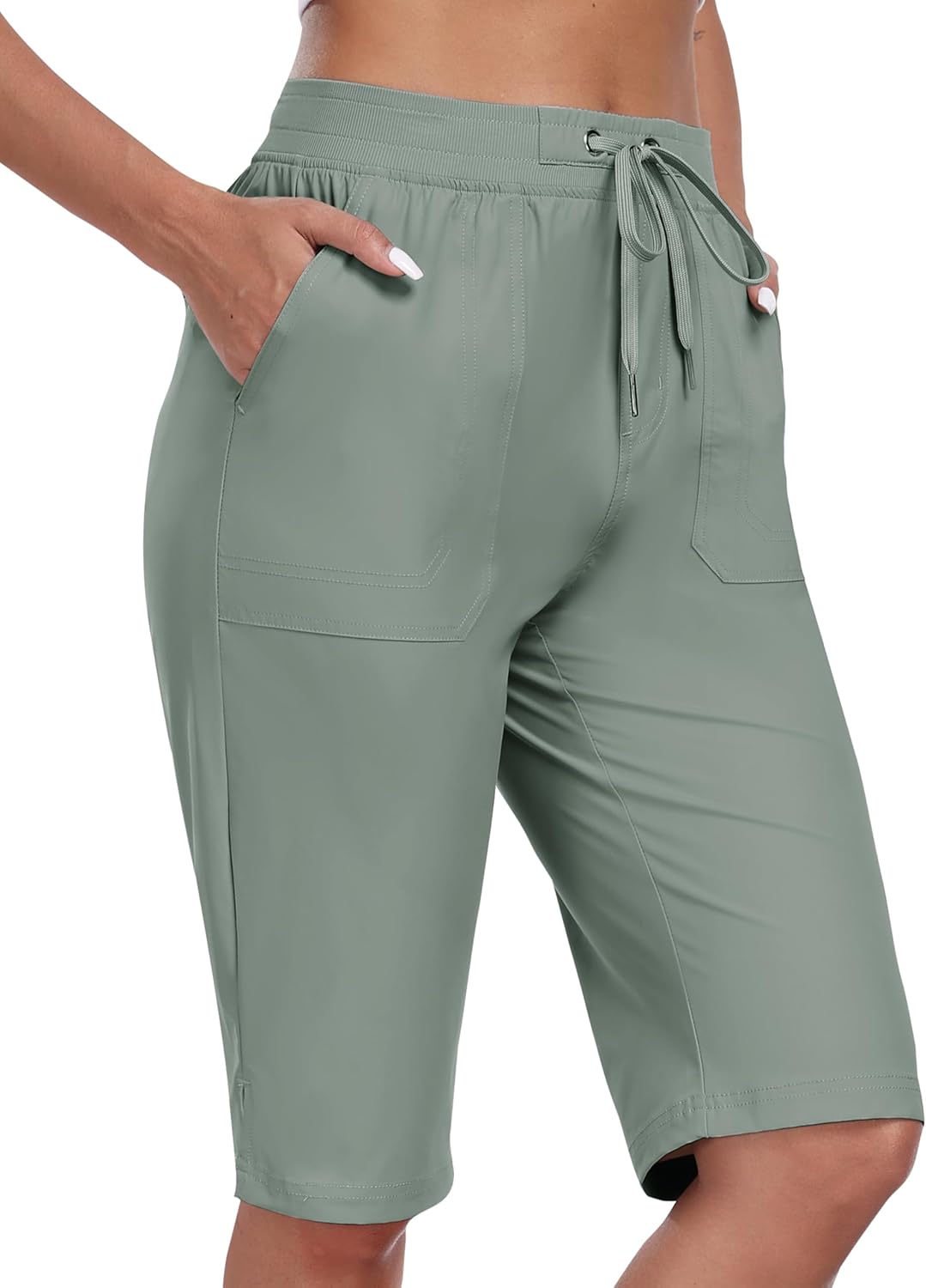 MoFiz Womens 13" Knee Length Hiking Shorts Quick Dry Water Resistant Athletic Travel Golf Bermuda Shorts with 3 Pockets