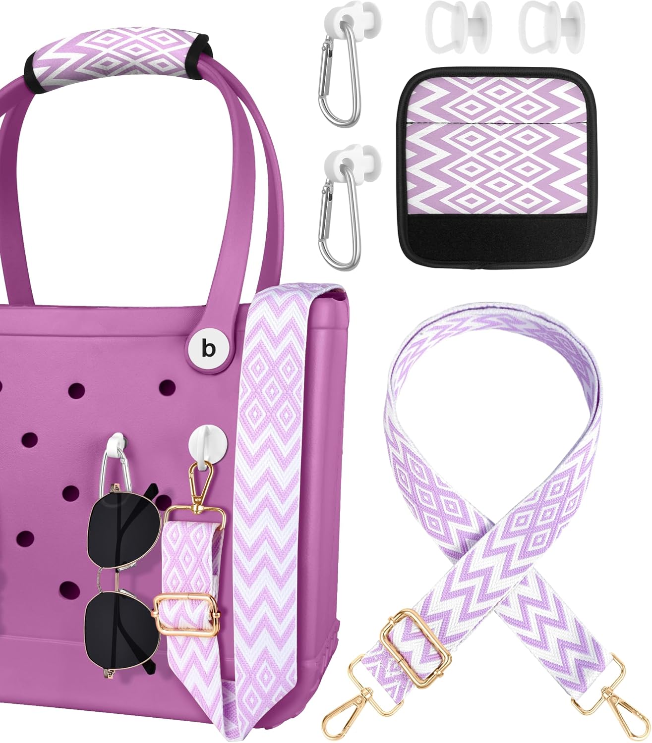 Bag Strap Crossbody for Bogg Bag Accessories - Charms Shoulder Strap Neoprene Luggage Handle Wrap for Suitcase & 2 Key Holders Purple Geometric