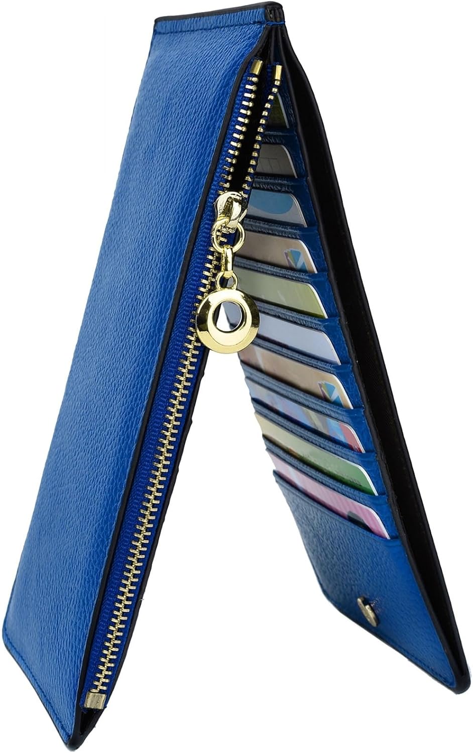 - 20 card slots, an open pocket and a zippered compartment for bill/ cash/ change/ a slim cell phone.