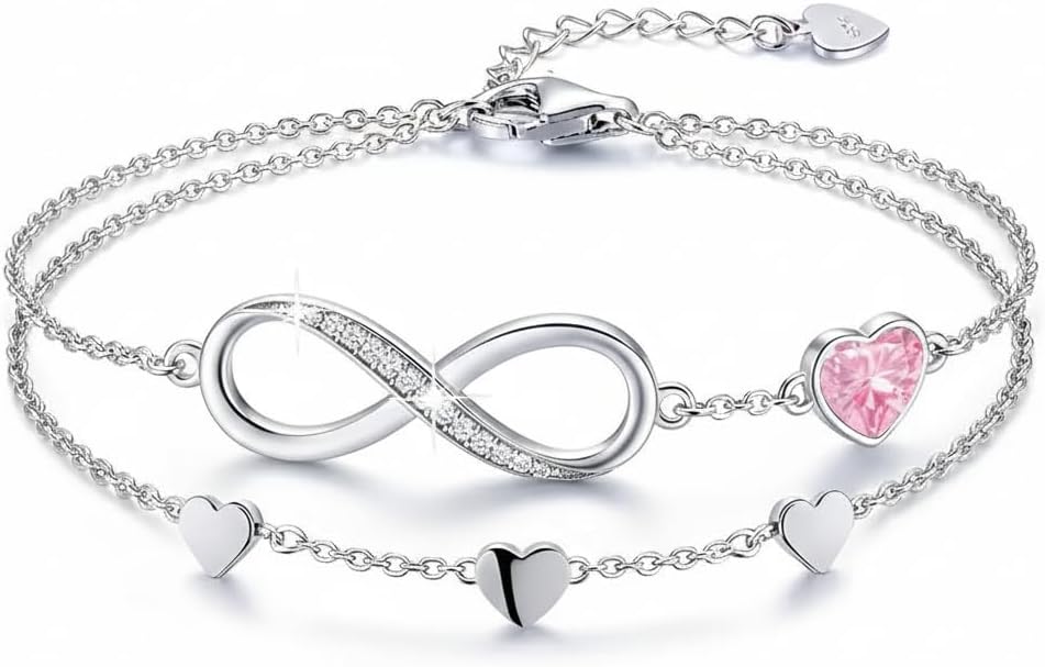 Personalized Bracelet Infinity Heart Birthstone Name Bracelet 925 Sterling Silver Adjustable Mother's Day Gift Anniversary Birthday Jewelry for Grandma Girlfriend Custom Jewelry With Name
