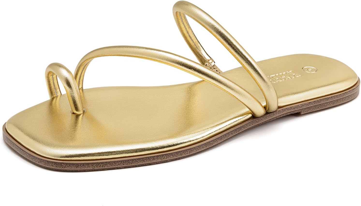 Rihero Women's Slide Sandals Comfortable Square Toe Beach Slip On Strappy Thong Flat Sandals