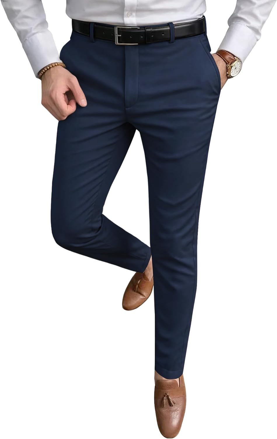 Men's Slim Fit Stretch Dress Pants Business Casual Skinny Tapered Chinos Trousers with Expandable Waist