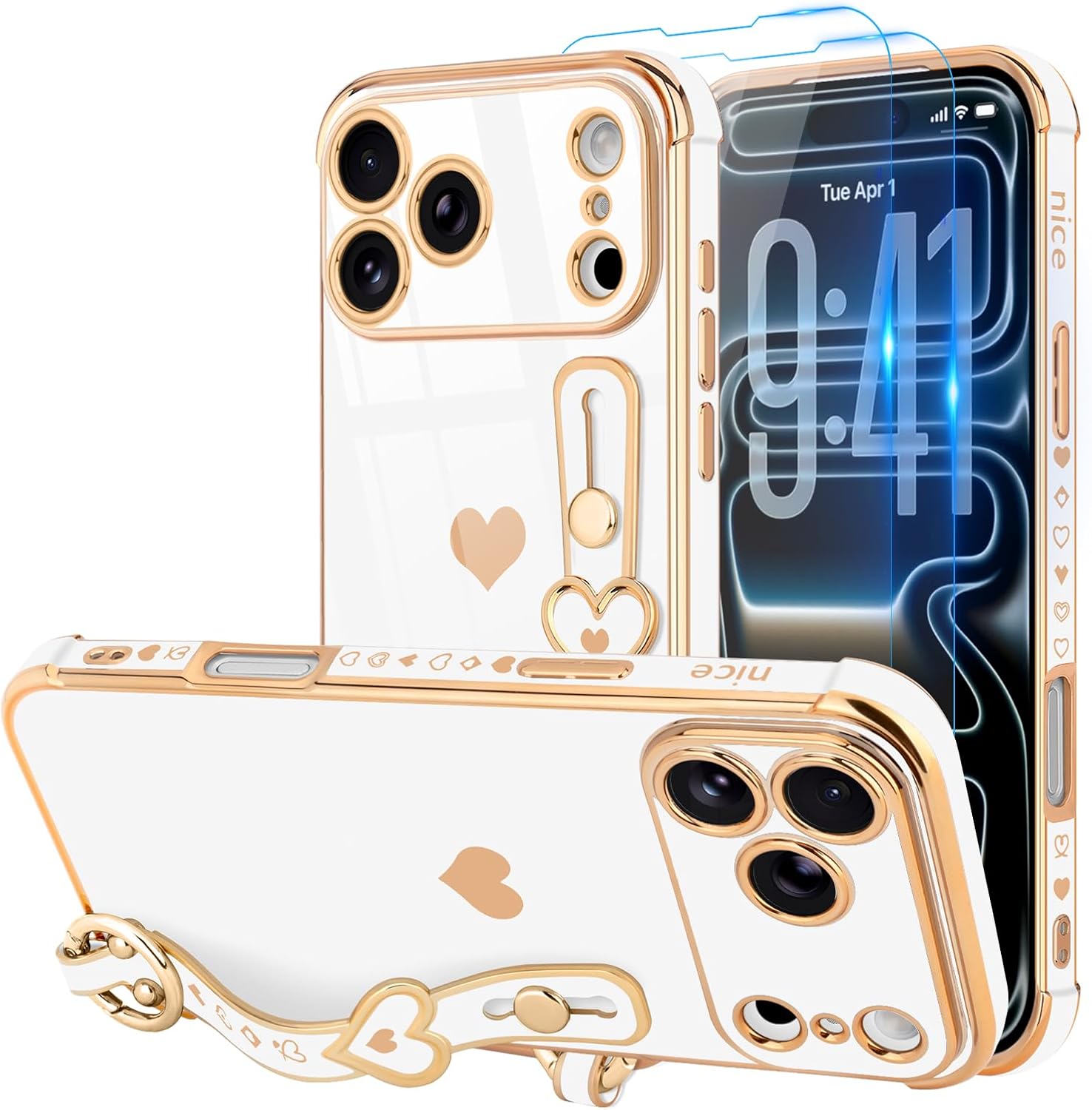 ![Compatible with iPhone 17 Pro Case with Strap for Women Girls [2× Screen Protectors], Cute Love-Hearts Design, Wristband Kickstand Plating Edge Protective Phone Case (6.3") - White](https://m.media-amazon.com/images/I/71WtkHa2-4L._AC_SL1500_.jpg)