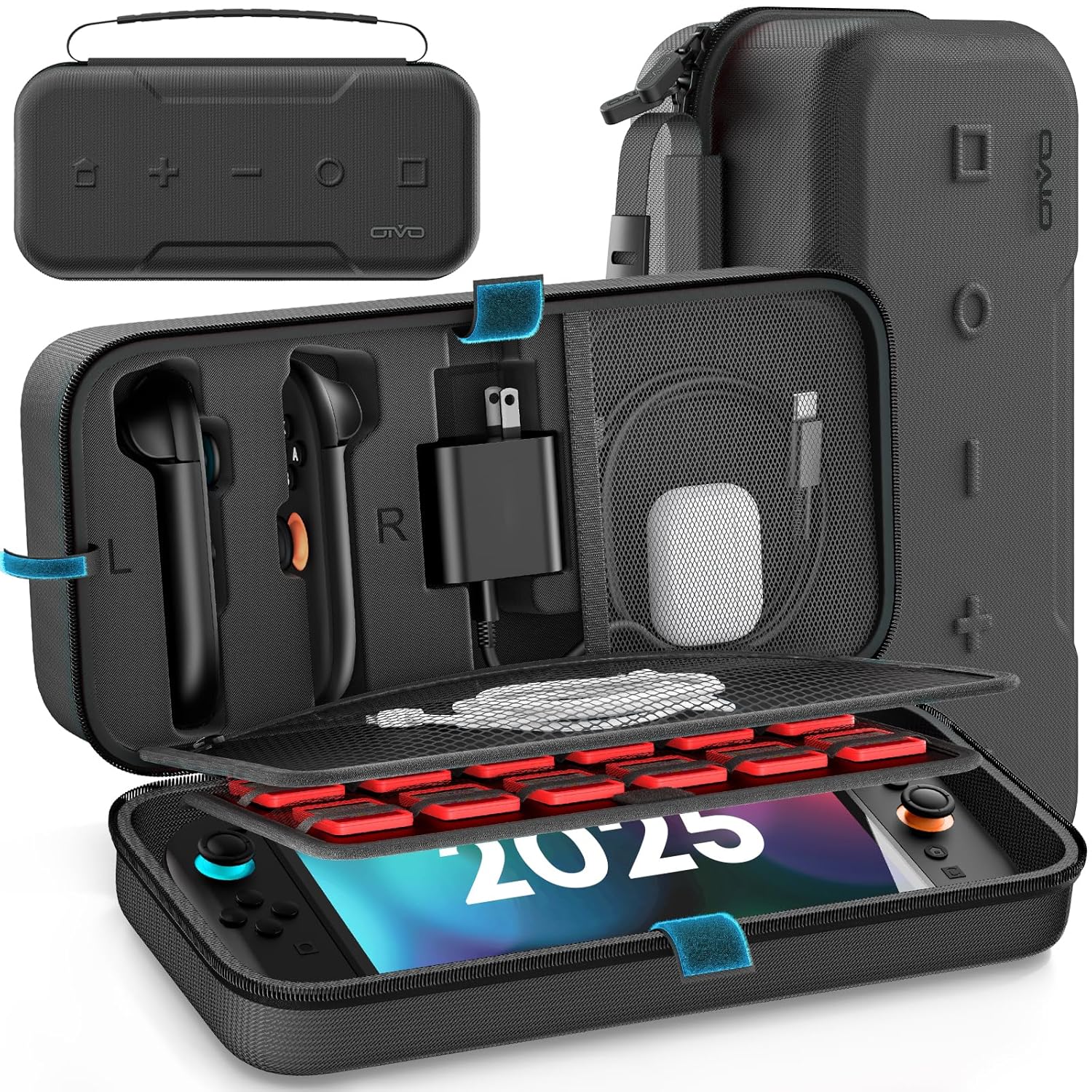- Dedicated Groove Design - Switch 2 travel case has precise cut slots specially designed for storing left & right joy-con and adapter, more practical than common products on the market in similar size. Separate design avoids the metal pin of adapter to scratch joy-con. OIVO case for nintendo switch 2 resolves the trouble that it is difficult to store large adapter in common size bag. With inner soft foam, switch light case provides better shock and press resistant to protect your love switch.