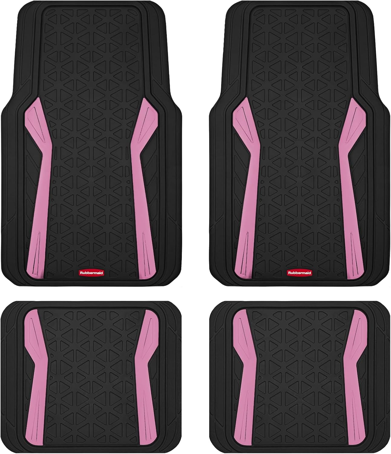 Rubbermaid Car Floor Mats Full Set, Premium Heavy Duty All-Weather Car Mats– Rugged Rubber with Brushed Aluminum Inserts, Universal Trim-to-Fit, Anti-Slip Backing for Cars, SUVs, Trucks & Vans - Pink