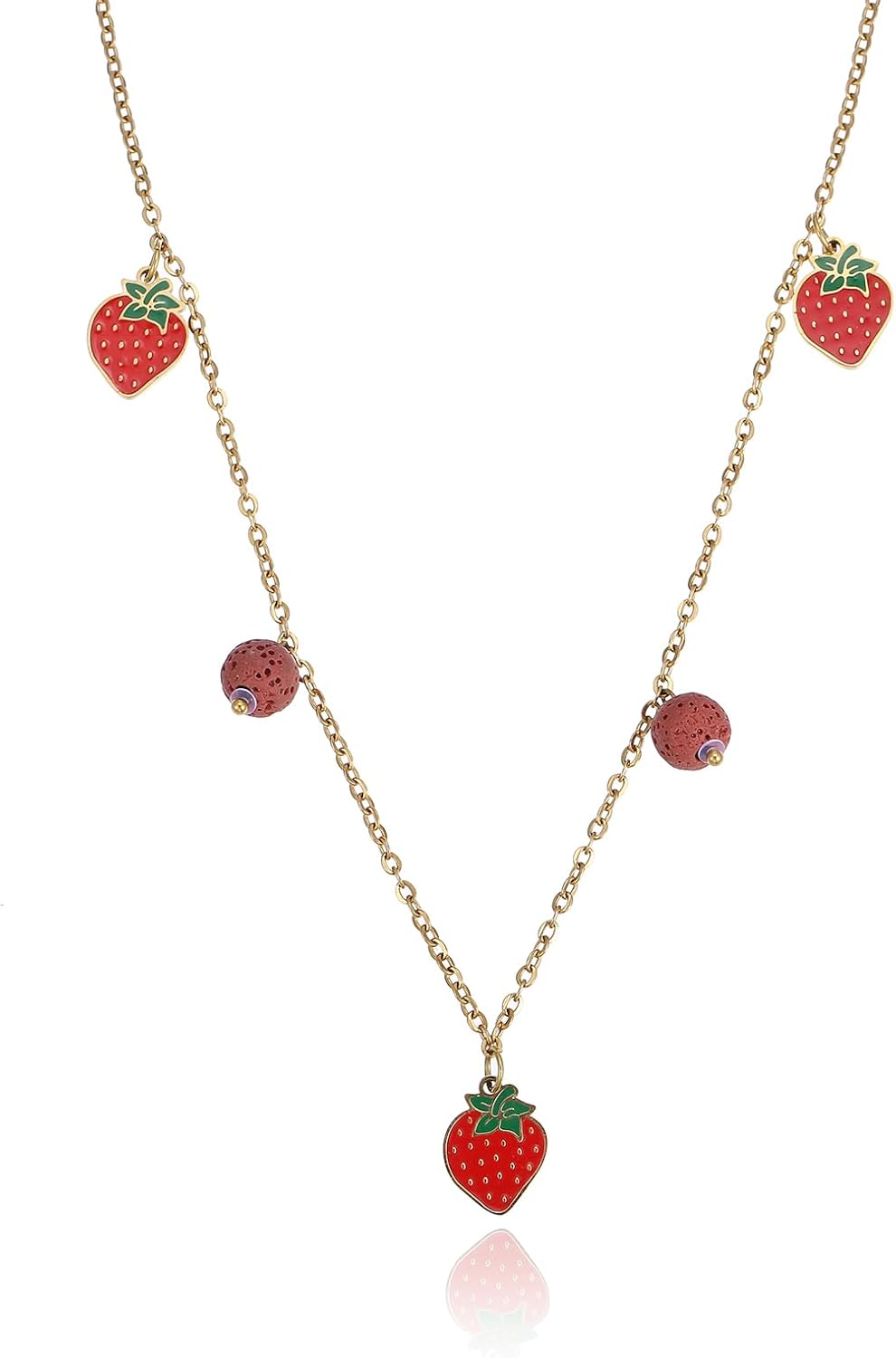 Delicate Fruit Pendant Stainless Steel Necklace for Women, Gold Chain with Cherry, Strawberry, Watermelon Charms Cute Tropical Necklace