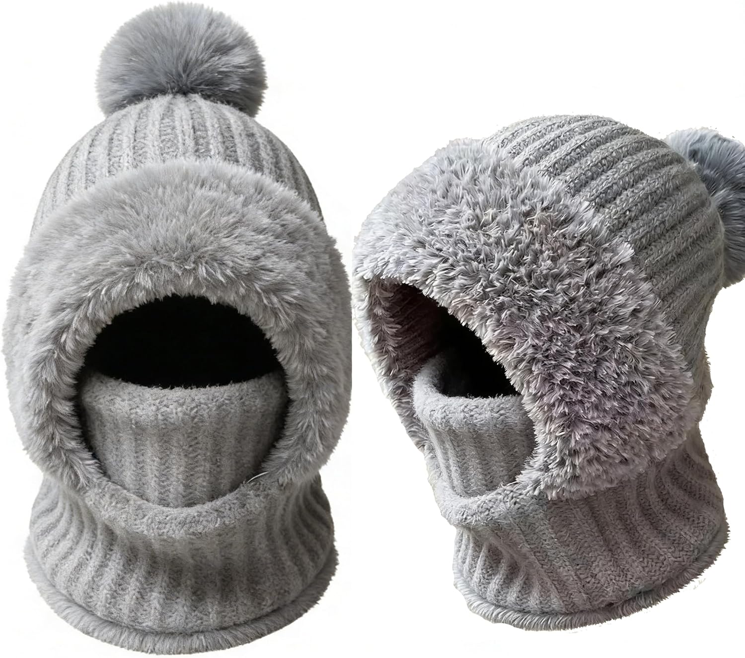 Upgrade Upgrade 3 in 1 Beanie Hat with Scarf and Mask,Womens Knit ski mask Fleece Lined Winter Scarf