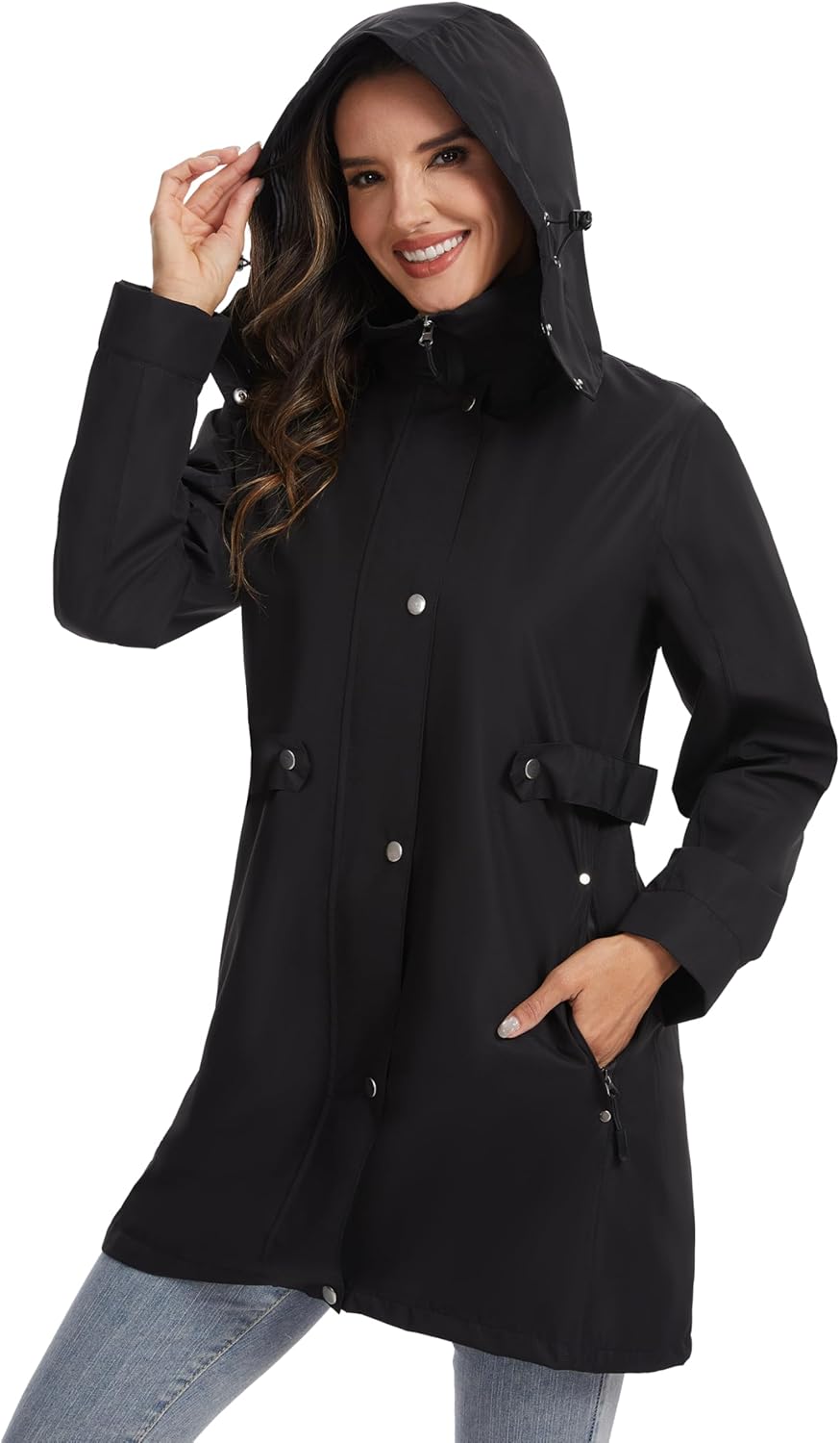 HALO RAIN Women's Long Rain Jacket Waterproof Hooded Raincoat lined Lightweight Trench Coat Outdoor Hiking Windbreaker