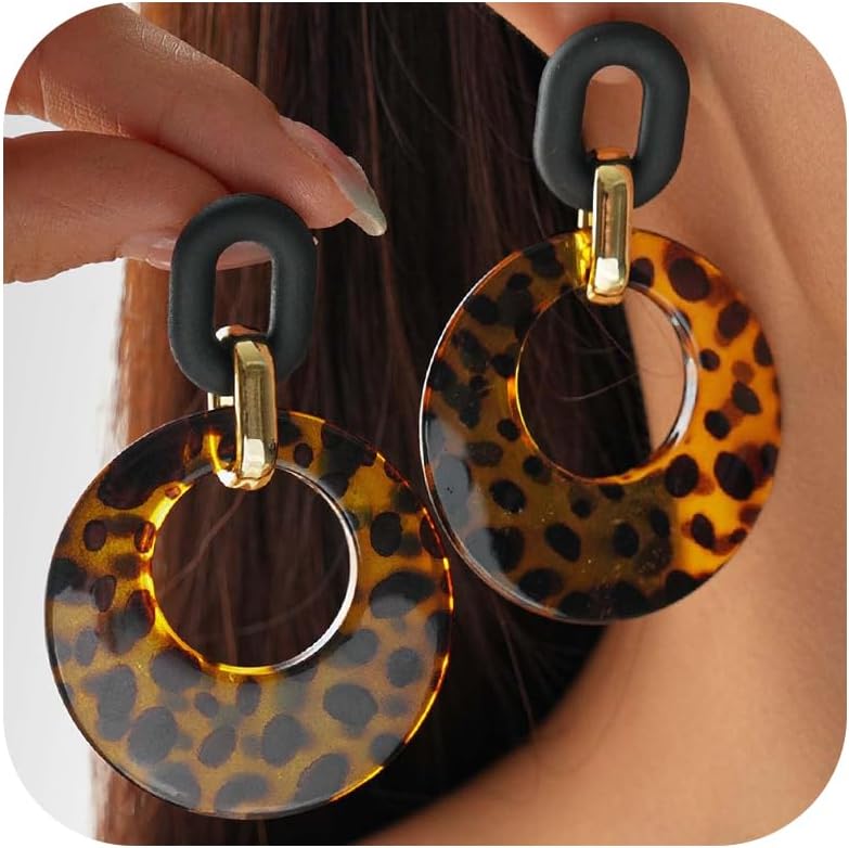 Leopard Earrings for Women Hoop Leopard Print Dangle Drop Chain Charm Acrylic Chunky Dainty Statement Stud Jewelry Gifts