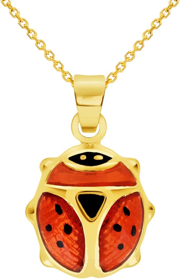 Jewelry America 14k Yellow Gold Mini Red Enamel Ladybug Charm Pendant Necklace