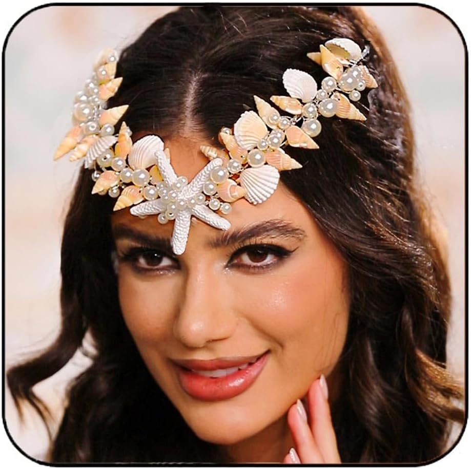 Brishow Starfish Headband Tiaras Silver Seashell Bridal Headpiece Beach Wedding Hair Accessories for Women and Girls