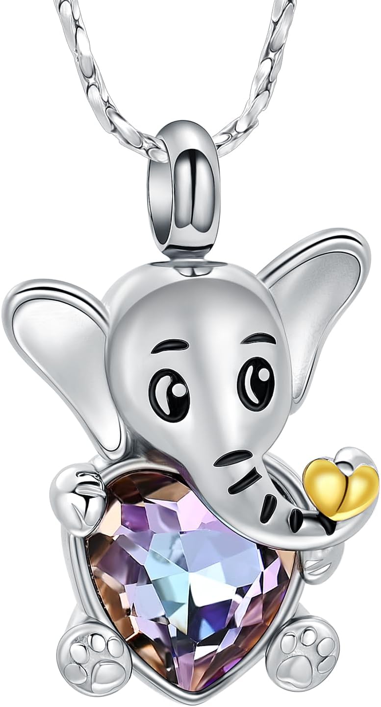 Imrsanl Elephant Urn Necklace Cremation Jewelry for Ashes Stainless Steel Heart Crystal Memorial Pendant Human Pet Ash Holder Keepsake Gift for Women Men