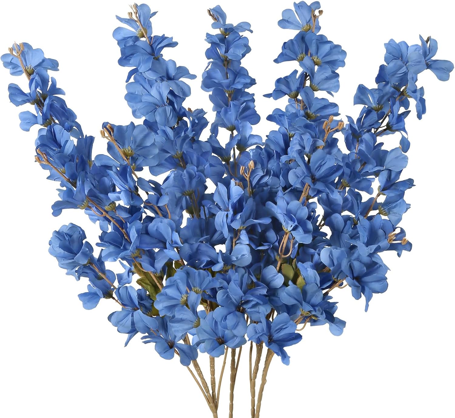 IPOPU Blue Delphinium Artificial Flowers 5 Pcs Silk Larkspur Royal Blue Flowers Artificial Snapdragon for Tall Vase Wedding and Engagement Anniversary Arrangement