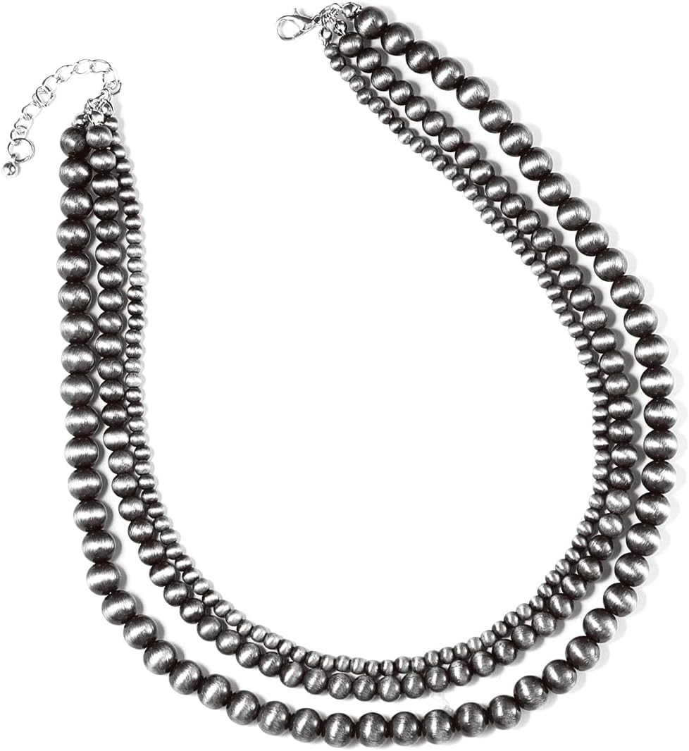 Western Navajo Pearl Necklace for Women Turquoise Cowgirl Beaded Pendant Boho Vintage Layered Choker Jewelry for Girls Birthday Party Gifts