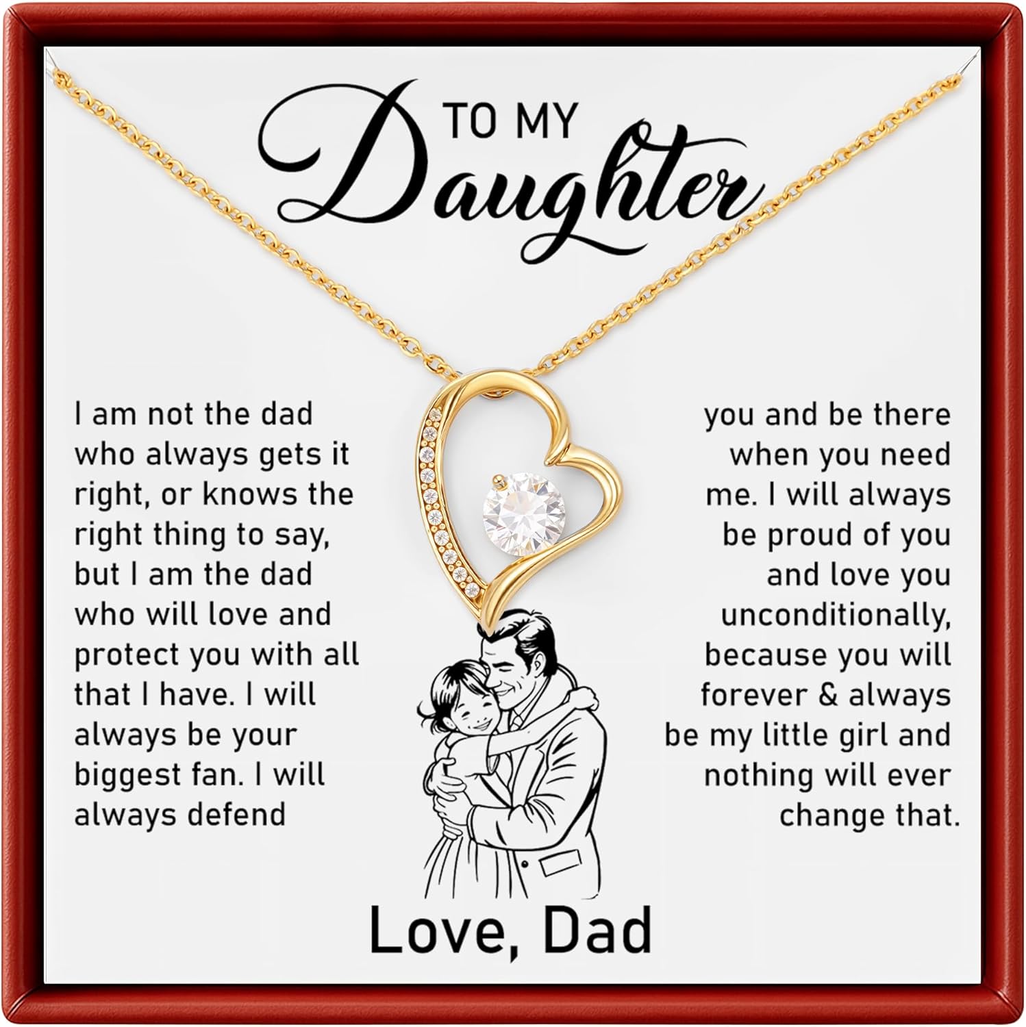 To My Daughter Necklace from Dad Forever Love Heart Pendant with CZ Stone Graduation or Birthday Jewelry with Message Card & Gift Box