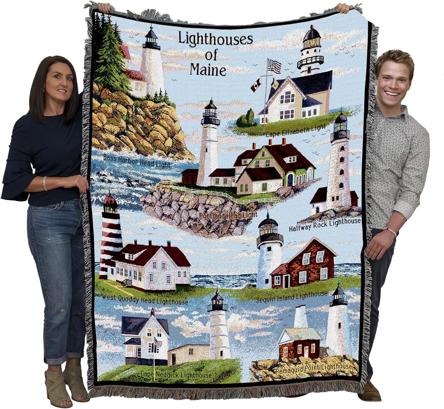 Lighthouse of Maine Woven Tapestry Blanket 72x52 USA