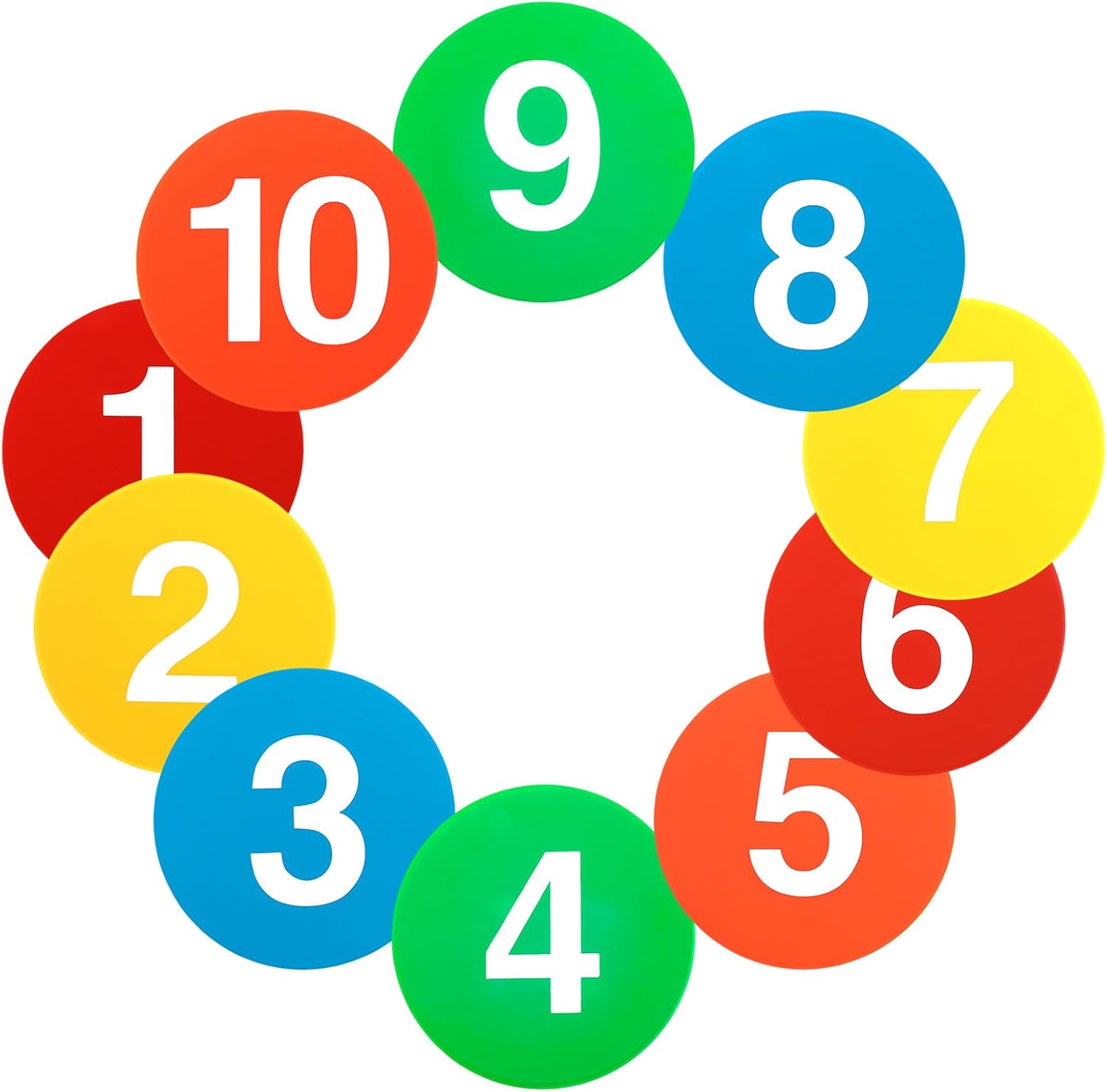 - 【Bright & Organized】Featuring vibrant multicolor designs and bold numbers 1 to 10, these spot markers offer excellent visibility for easy identification and quick organization during training sessions. The bright colors (red, blue, green, yellow, and orange) enhance visual acuity, helping athletes and coaches map out drills efficiently. Whether used for agility training, basketball drills, or classroom activities, these poly spots ensure clear boundaries and seamless coordination.