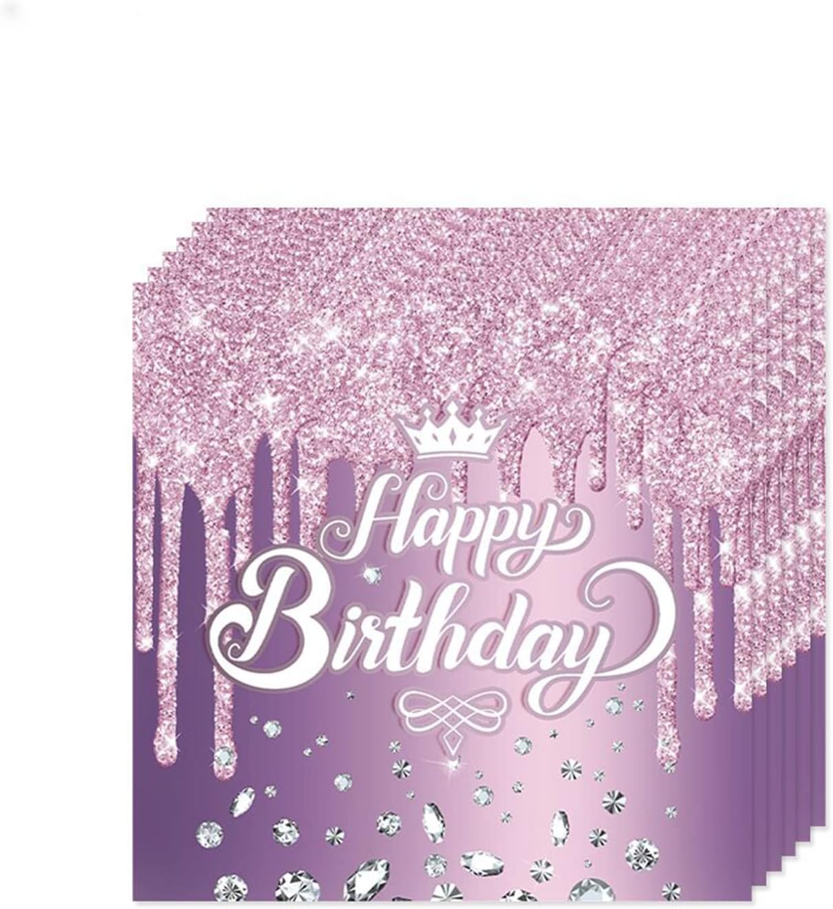 TUIC 40PCS Happy Birthday Napkins Purple Birthday Party Napkins Disposable Paper Napkin for Anniversary Happy Birthday Supplies