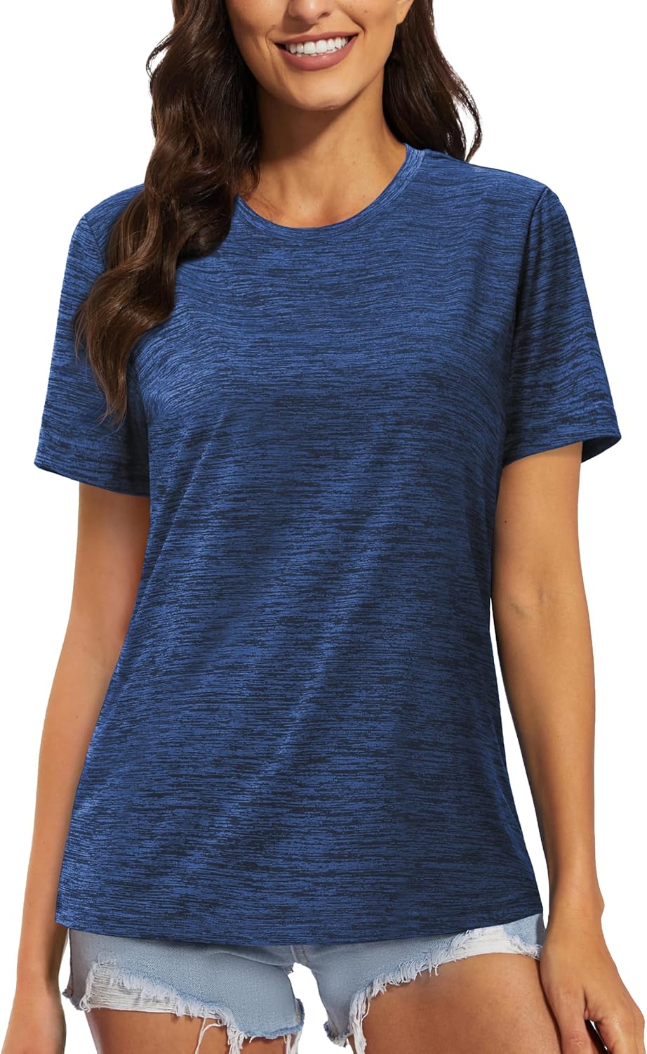 MAGCOMSEN Workout Shirts for Women Crewneck Sports Fitness Running Athletic Lightweight Activewear Sapphire Blue, L