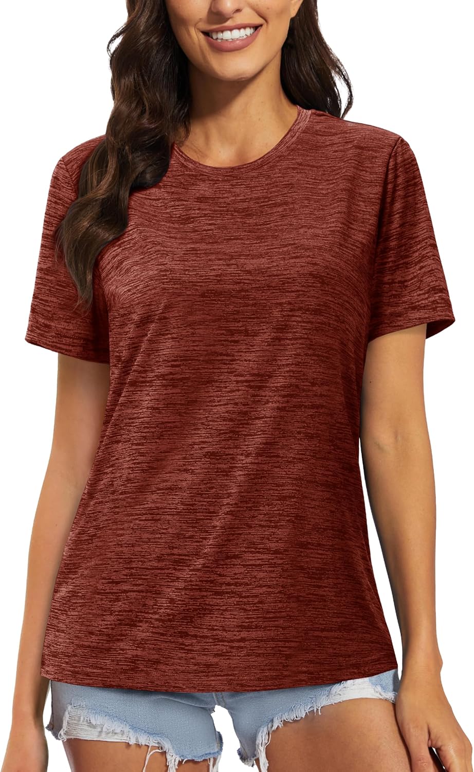MAGCOMSEN Women's Workout Shirts Crewneck Short Sleeve Moisture Wicking Lightweight Tops for Gym Athletic Sports