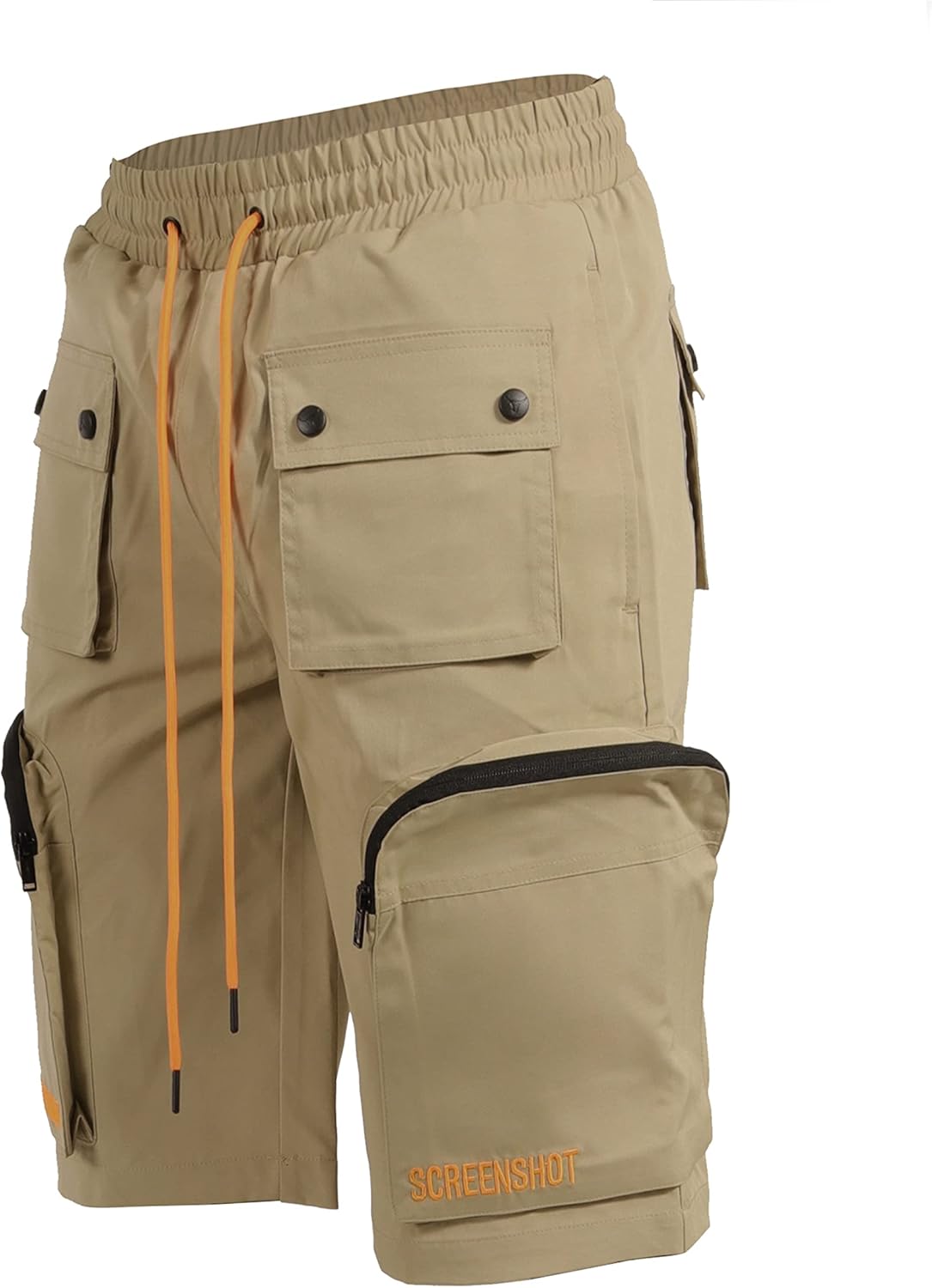 SCREENSHOT Mens Premium Multifunctional Utility Nylon Cargo Shorts - Crisp Shell Fabric 3D Pockets Hiking Tapered Bottoms