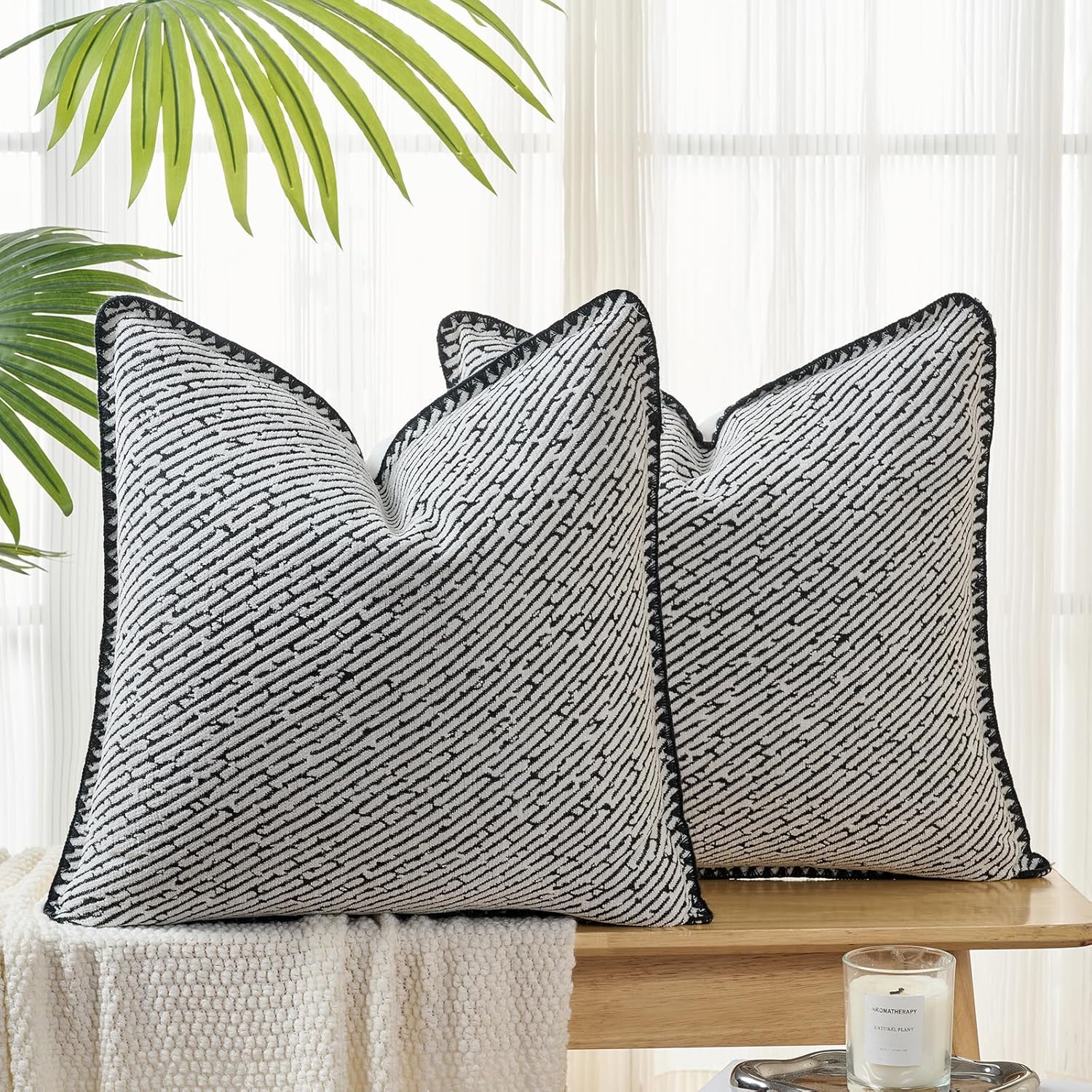 - Modern Minimalist Design – Stylish diagonal black and white textured pattern with elegant black piping adds a sophisticated touch to any space, ideal for modern, Scandinavian, or minimalist décor styles