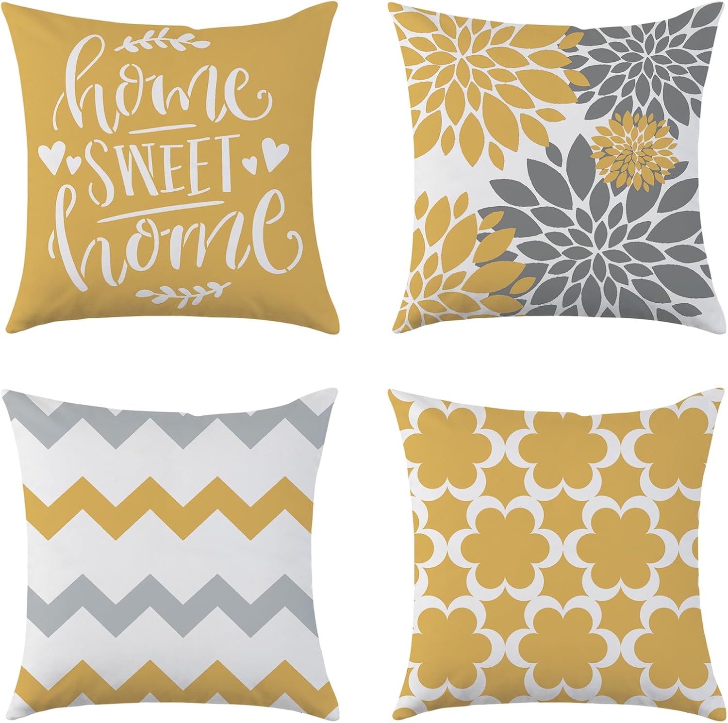 - Throw Pillow Covers Set:These pillow covers18X18 with 4 different patterns,include home sweet home, beautiful floral Leaves, simple wave and lines. Easy to match your Couch Sofa Bed for Outdoor Patio Home Decor