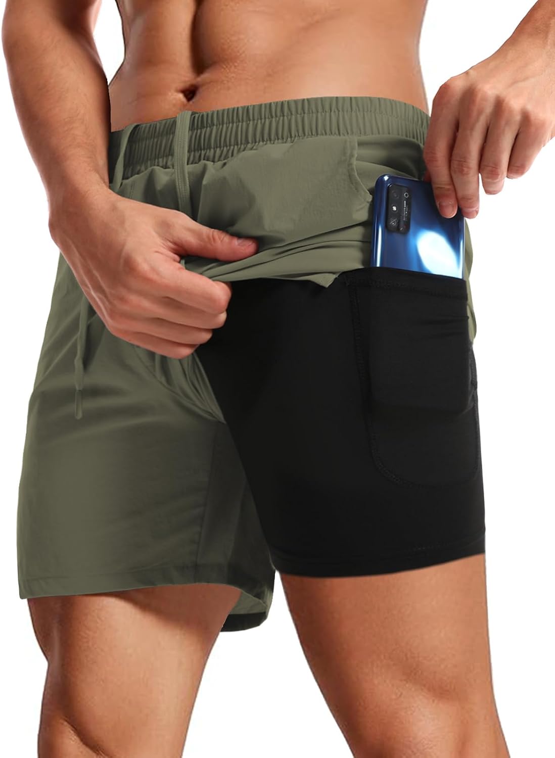 Aolesy Men's 2 in 1 Running Shorts 5" Workout Gym Athletic Shorts for Men Quick Dry Lightweight Training Shorts with Pockets