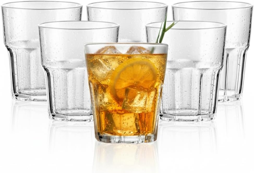 - Durable and Shatter Resistant: Unlike glass cups, these clear drinking glasses set of 6 are almost indestructible, making them an ideal choice for children, outdoor activities, and daily use