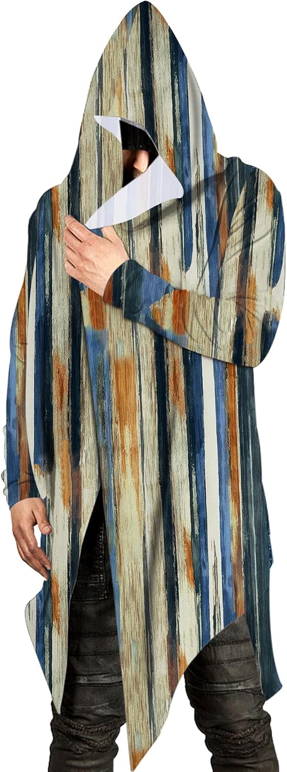 Poriff Mens Long Hooded Cardigan Long Sleeve Thin Cardigans Ruffle Shawl Collar Lightweight Drape Cape Overcoat Pockets