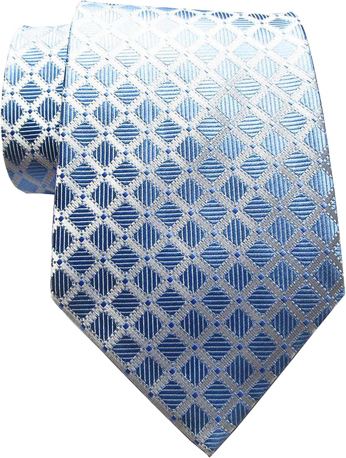 New Classic Checks JACQUARD WOVEN Silk Men's Tie Necktie (Light Blue)