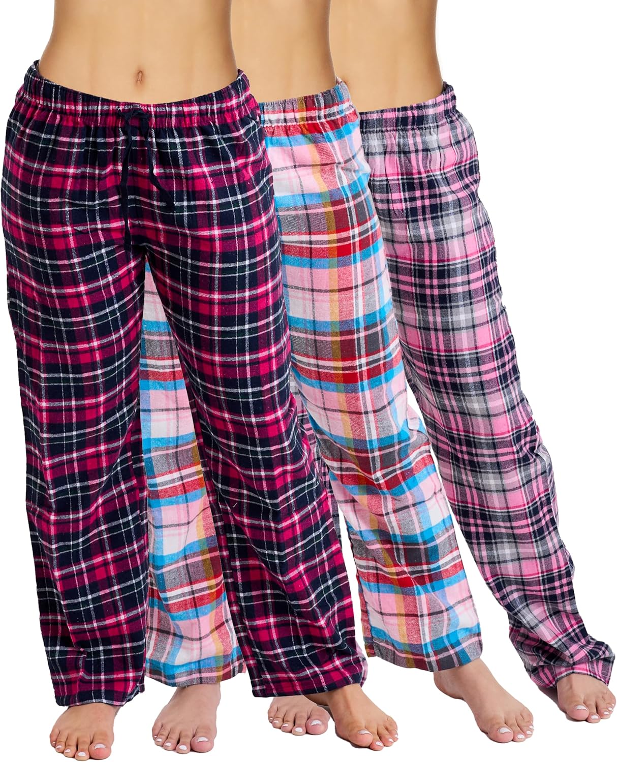 Active Club 3 Pack Cotton-Blend Flannel Pajama Pants for Women, Flannel Plaid PJ Pants for Women for Sleep and Lounge (S-2X)