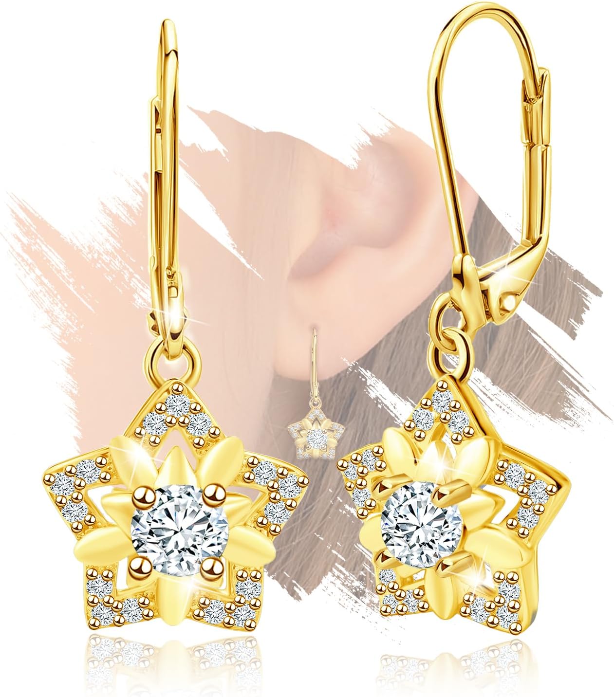 Sterling Silver Star Leverback Earrings - Hypoallergenic Charming Cubic Zirconia Star-Shaped CZ Earrings Fashion Jewelry for Mom Wife