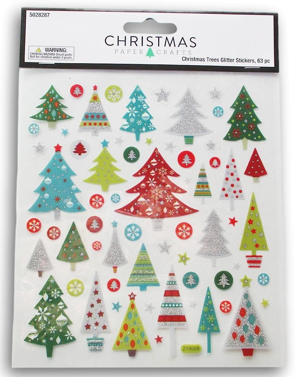 Christmas Tree Stickers - Glitter Adhesive Decals for Crafts & Scrapbooks - 63 Pieces