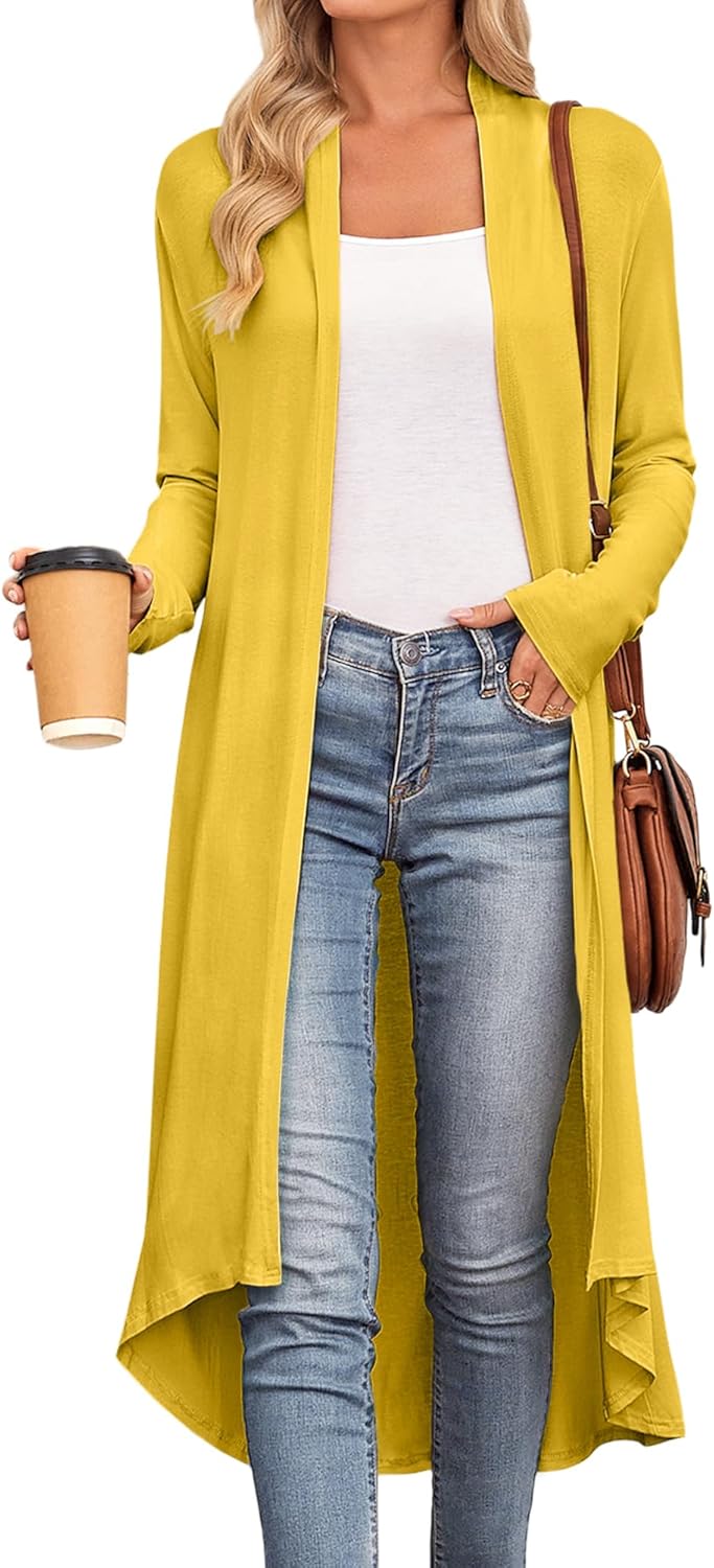 SimpleFun Womens Long Cardigan Drape Open Front Dusters High Low Hem Flowy Lightweight Long Sleeve Cardigans Coats