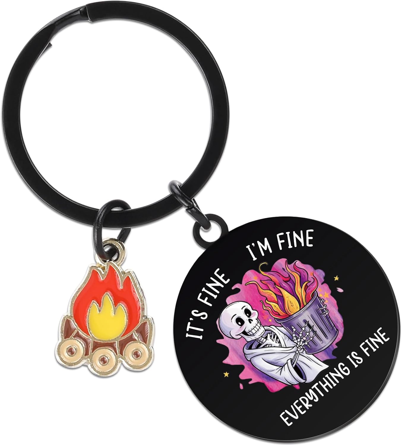 Skull Dumpster Fire Gifts - Everything Is Fine Funny Appreciation Keyring Positive Emotional Support Novelty Keychain Birthday Gift for Coworkers Women Men Christmas Cute Office Accessories