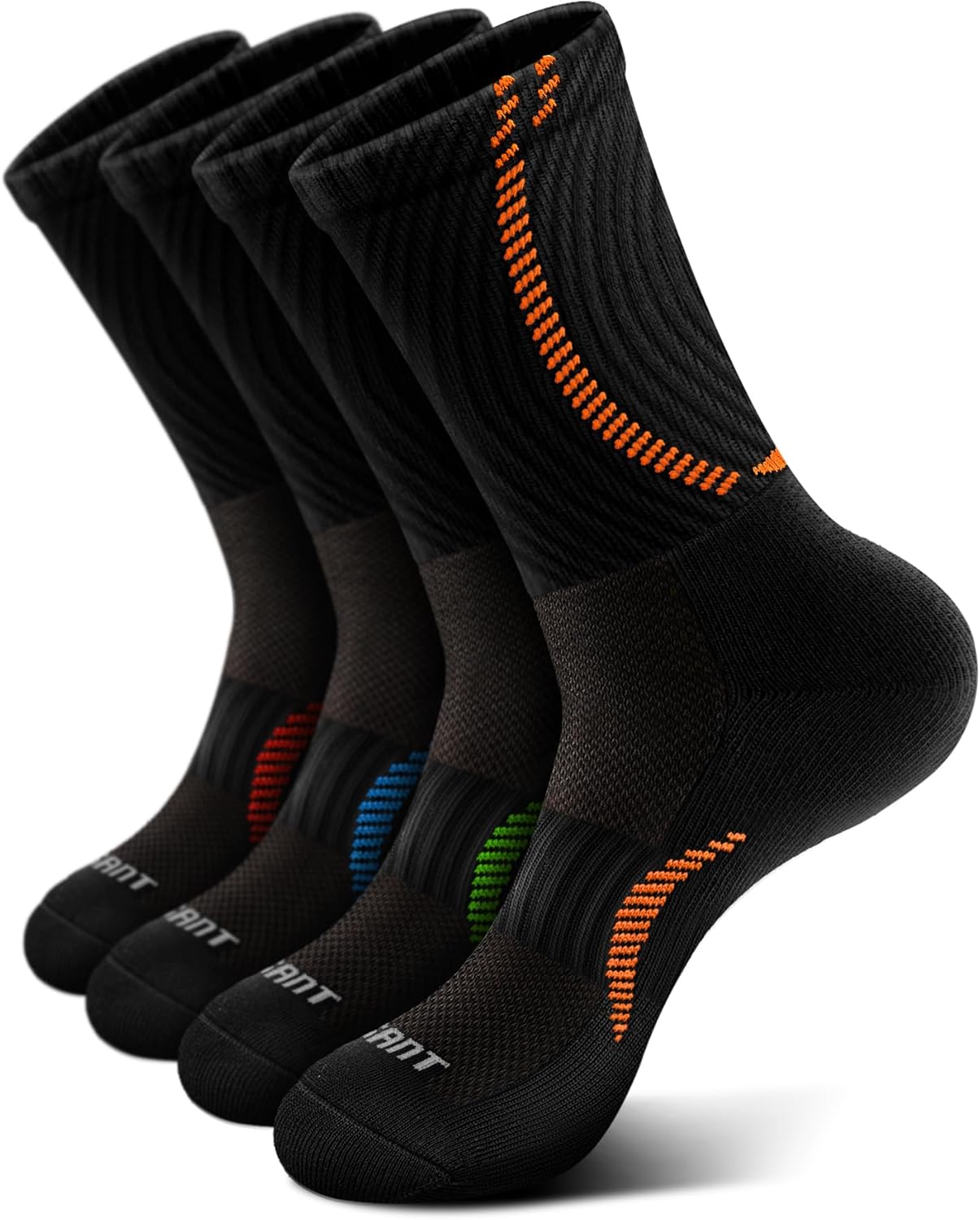 BULLIANT Boys Socks Compression Athletic Crew Socks Cushioned Running Arch Support 4 Pairs for 4-12 Years