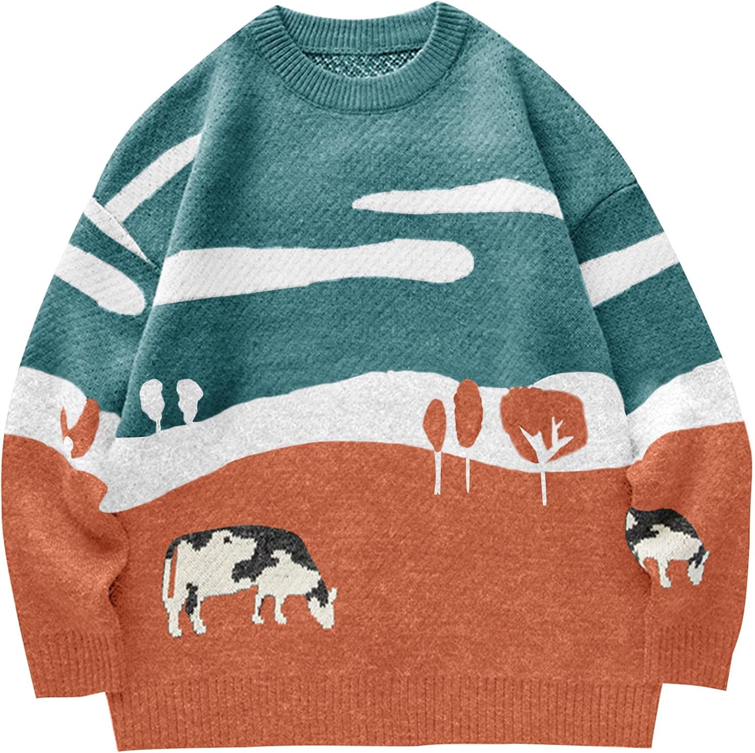 Flygo Men's Cow Sweater Harajuku Oversized Sweaters Chunky Casual Knit Pullover Jumper Fall Winter Fashion