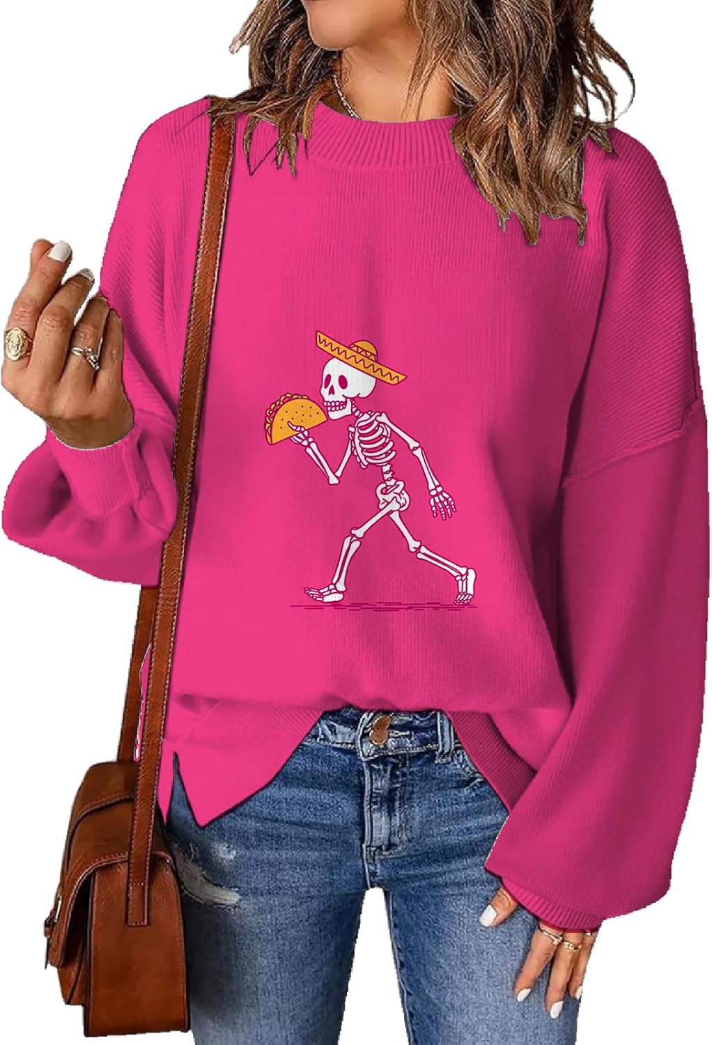Womens Sweaters Novelty Festival Print Crewneck Knitted Pullover Tops Chunky Comfy Fall Winter Jumper