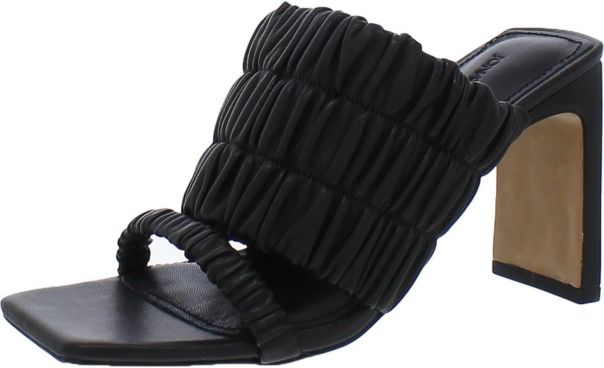 JONATHAN SIMKHAI Womens Black Padded Ruched Felix Square Toe Block Heel Slip On Leather Heeled Sandal 39