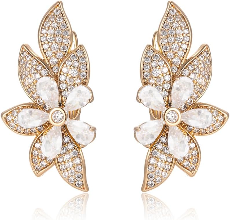 XUPING Crystal Flower Stud Earrings 18k Gold Plated Cubic Zirconia Hypoallergenic Floral Jewelry For Women