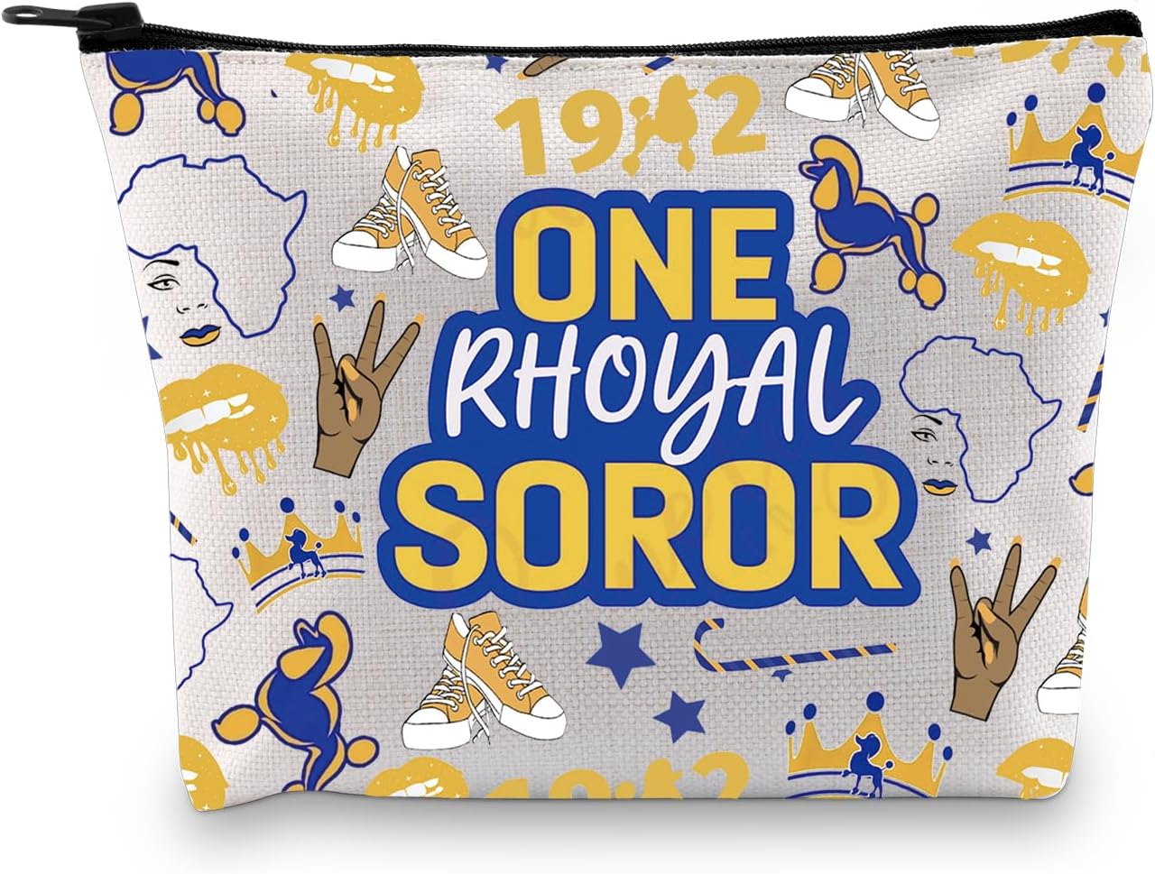 GJTIM Sisterhood Sorority Paraphernala Gift Sorority Sister Gift Greek Sorority One Rhoyal Soror Zipper Pouch Pretty Poodle Blue And Gold Makeup Bag (One Rhoyal Bag)