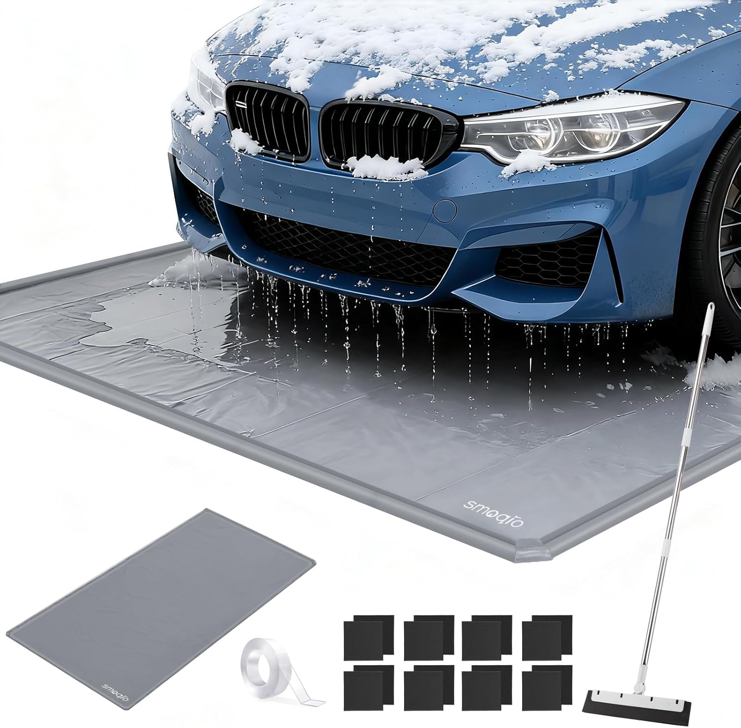 - Guard Your Garage Against Winter’s Mess: The SMOQIO garage floor mat features 1.2“ raised foam edges that contain melted snow, mud, and dirty water, keeping your floor clean and safe. Built with a strong non-slip base, it’s designed to handle the toughest garage conditions and help prevent slips and accidents