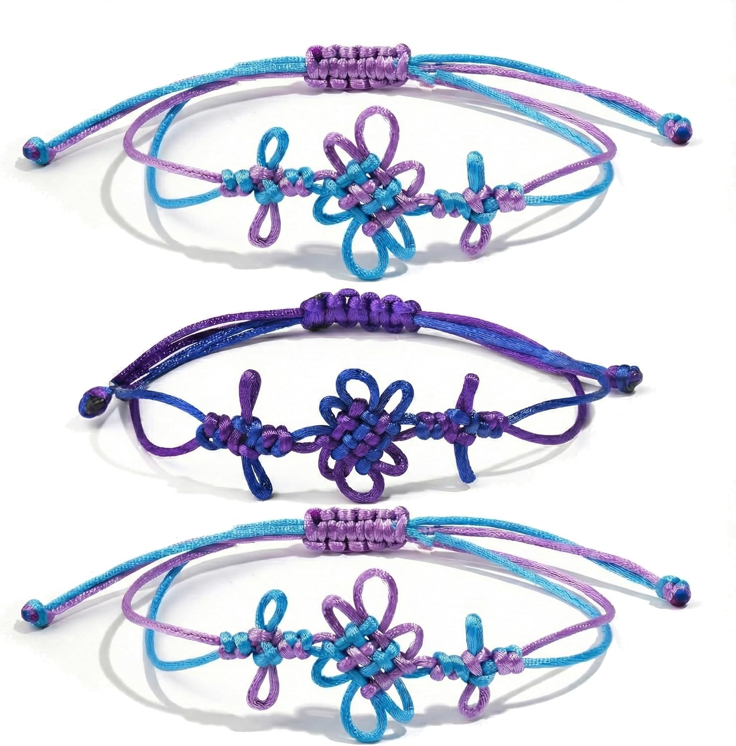 HOYDATE 3Pcs K-Style Handmade Woven Knot Bracelets for Women Men, Adjustable Braided String Wristbands, Purple Friendship Jewelry Set, Aesthetic Concert & Cosplay Accessories