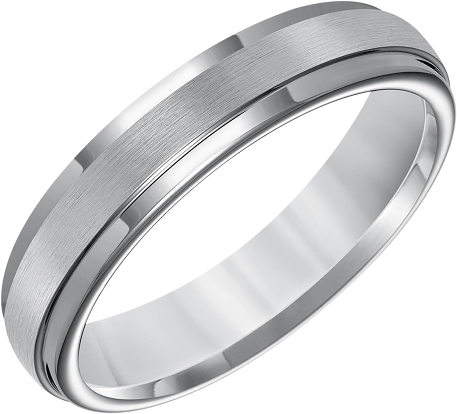 Brilliant Expressions Men’s Tungsten Carbide Wedding Band – 5mm Grey Satin Center Ring with Polished Step Edges, Comfort Fit, Scratch Resistant & Hypoallergenic