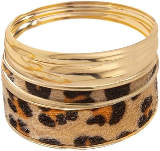 COLORFUL BLING Metal Punk Leopard Print Bangle Bracelet for Women Wide Chunky Gold Stackable Wrapped Open Cuff Bracelets Wristband Statement Jewelry