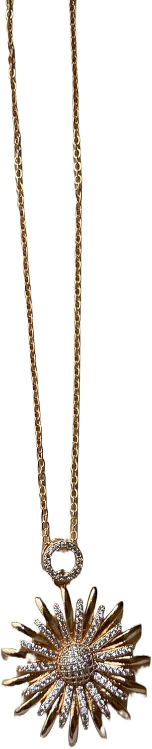 Elegant Sunflower Pendant Necklace, 18K Gold Plated Stainless Steel Chain, Zircon Crystal, Fashion Jewelry for Women