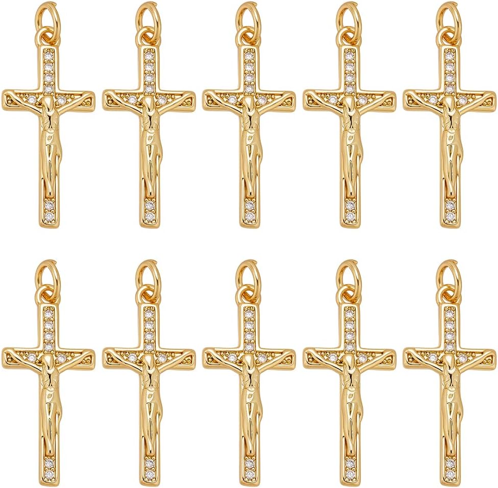 PH PandaHall 10pcs 18k Gold Plated Cubic Zirconia Cross Charms Rosary Making Supplies Western Jewelry Charms for Handmade Bracelets Necklaces Christmas Birthday Decoration