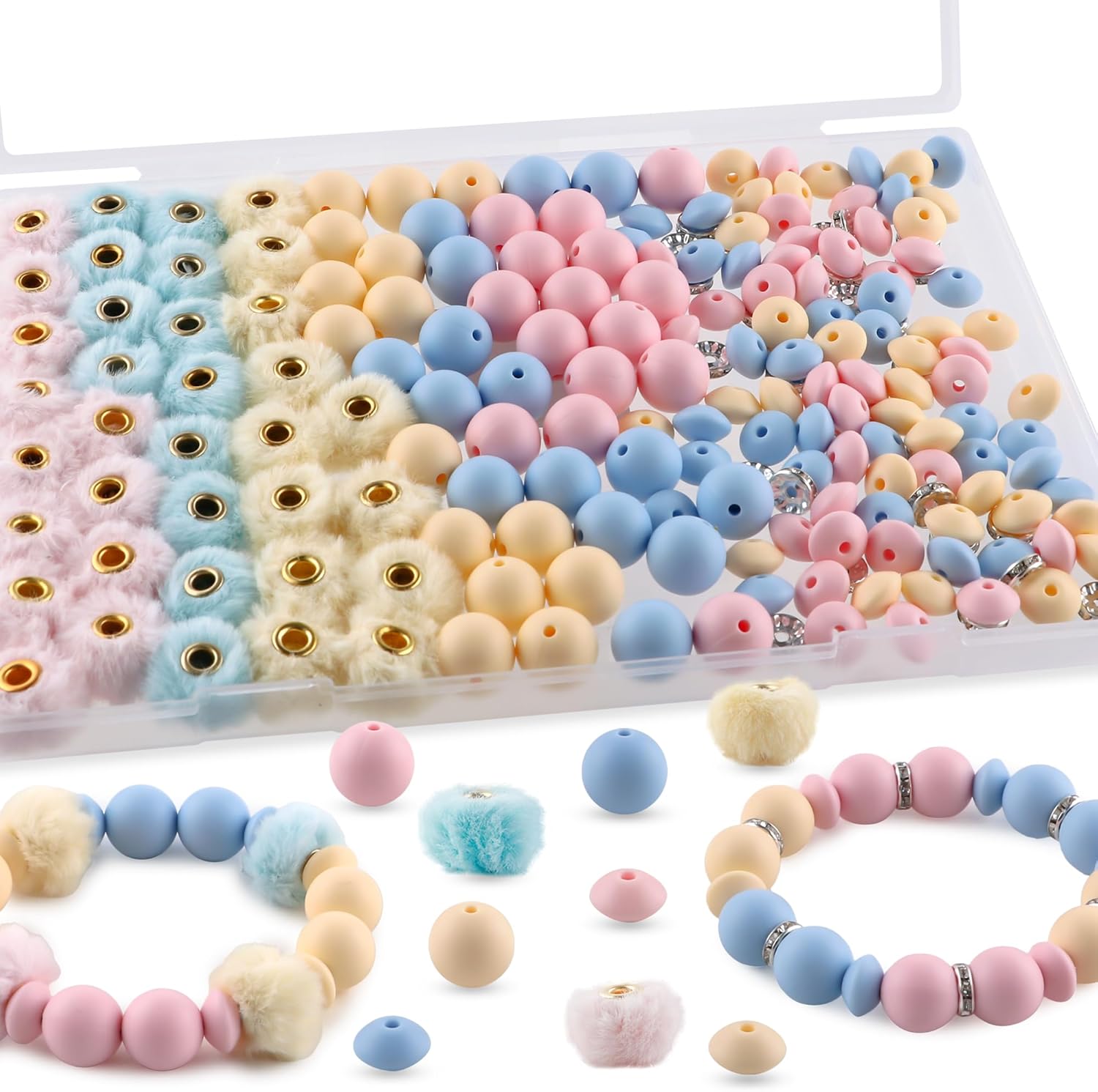 - Multiple Beads Assortments Set: We have selected silicone round beads, silicone lentil beads,pom pom beads and rhinestone spacer beads with diverse beads assortments. Available in multiple colors with silicone beads combination, you can choose the style according to your own preferences. Unique silicone beads designs and combinations let you fully enjoy the creative fun of DIY projects.