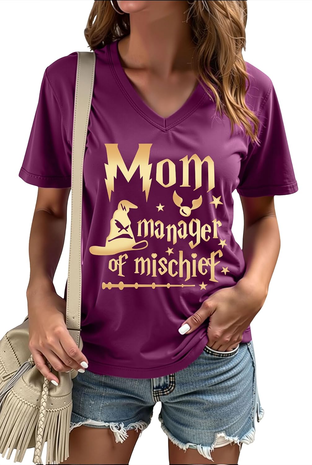 Women T Shirt Funny Mom Manager Shirt Mom Life Tee Magic Mom Shirt Mothers Day Tee Tops Summer Sleeve T Shirts Casual Tops